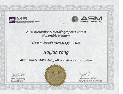 10/2024: I got International metallographic Society contest Artistic Microscopy and Electron Microscropy awards.